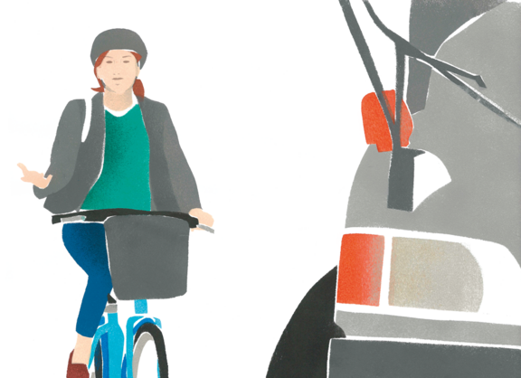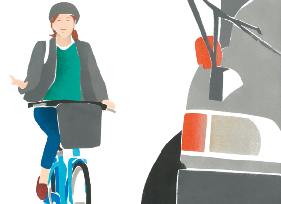 Passen Sie Ihre Fahrweise der entsprechenden Situation an und verhalten Sie sich vorhersehbar, in dem Sie beispielsweise Ihr Abbiegen durch Handzeichen ankündigen. Halten Sie Abstand von Lkw, Lieferwagen und Kommunalfahrzeugen. Aus bestimmten Winkeln können Fahrer nicht erkennen, ob sich seitlich neben dem Lkw Radfahrende befinden. Das kann bei Abbiegemanövern zu schrecklichen Unfällen führen.