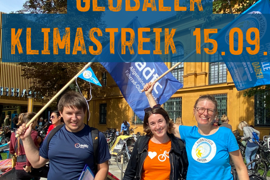 Die Verkehrswende erreichen wir nur mit politischen Veränderungen! Daher beteiligen wir uns vom Jungen ADFC München am Klimastreik von Fridays for Future.