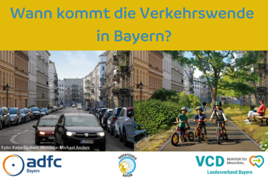 Anlässlich der bayerischen Landtagswahl 2023 und der Europäischen Mobilitätswoche laden die beiden Träger des Volksbegehrens Radentscheid Bayern, also VCD und ADFC Bayern, verkehrspolitische Expert:innen von CSU, Die Grünen, Freie Wähler, SPD, FDP, Die Linke, ÖDP und Volt zur Podiumsdiskussion ein und diskutieren die Frage "Wann kommt die Verkehrswende in Bayern?" Mehrere Aspekte der Mobilität werden diskutiert, z.B. Klimaschutz, Gleichwertigkeit der Lebensbedingungen, Sicherheit, Soziale Gerechtigkeit und Teilhabe.